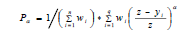 L’incidence de pauvreté P0 représente le ratio du nombre de personnes considérées pauvres à l’ensemble de la population ou du groupe concerné. Elle est mesurée par la proportion de la population se situant sous la ligne de pauvreté, la profondeur par le déficit moyen par rapport à la ligne de pauvreté des individus considérés comme pauvres. Toutefois, ces derniers concepts ne prennent pas en considération la distribution de notre mesure de bien-être parmi les ménages définis comme pauvres. En conséquence, un transfert de la part de revenu d’un ménage très pauvre vers un ménage moins pauvre (mais demeurant sous la ligne de pauvreté) ne changera pas la valeur d’un indice reflétant ces concepts. Pour faire face à ce problème, le concept de sévérité tient compte de la distribution du bien-être parmi les pauvres. Les trois concepts précédents constituent des cas distincts de la classe Pα ou FGT des mesures de la pauvreté développée par Foster, Greer et Thorbecke (1984)(6) et donnée par l’expression suivante(7) :