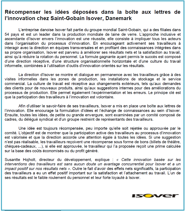 La dynamique intrapreneuriale fait référence à un dispositif complexe dont la fonction est de susciter l’initiative intrapreneuriale. Exemple avec la société Isover(15) :