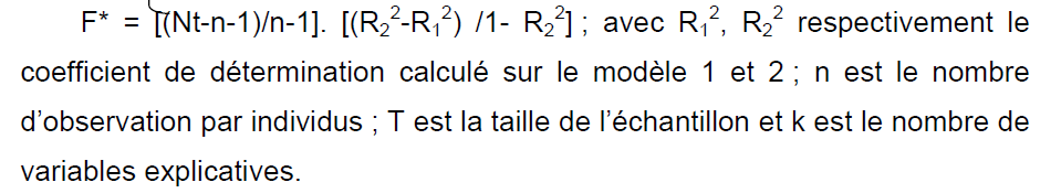 spécifications des effets individuels en panel. Il sert ainsi à discriminer les effets fixes