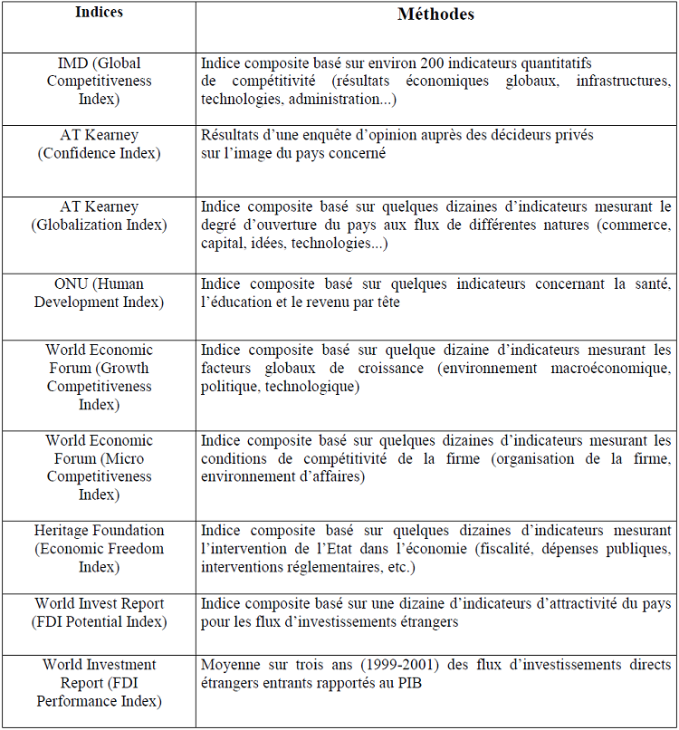 Il s’agit de l’indice « Doing Business » de la Banque Mondiale et les baromètres d’attractivité