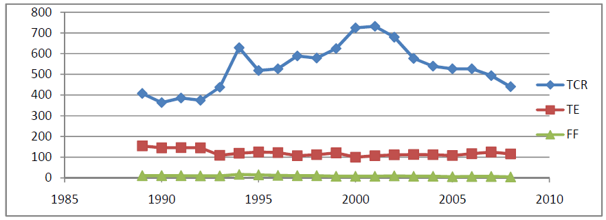 constater que le TCR s’est déprécié. Ce qui pourrait se justifier par le fait que la