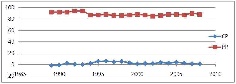 %]. La réciproque n’est pas vérifiée. Ce résultat de causalité entre la PP et la CP