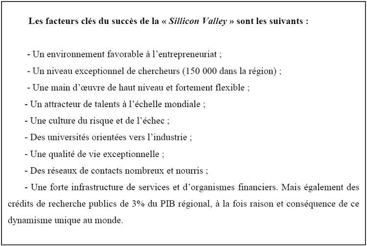 Encadré 1 : les facteurs clés de succès de la « Sillicon Valley »