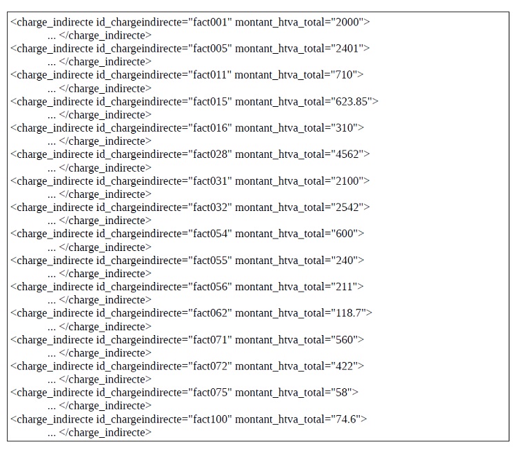 Return affiche à chaque itération l’attribut « charge_indirecte/@montant_htva_total » de la variable