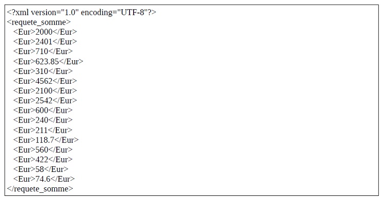 Nous obtenons le résultat attendu: la somme est de 17533,15 (Euro).