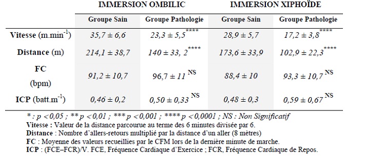 Tableau 13. Comparaison entre le groupe sain et le groupe pathologique selon les deux modalités d’immersion. (M ± SD p)