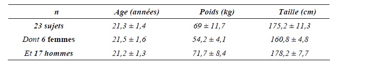 Tableau 2. Caractéristiques du groupe sain. (M ± SD)