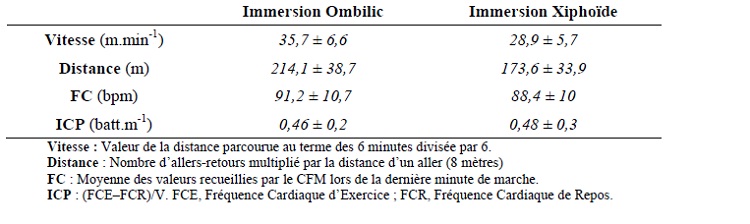 Tableau 7. Effet de l’immersion sur les valeurs de vitesse distance FC et d’ICP selon les trois modalités d’immersion. (M ± SDp)