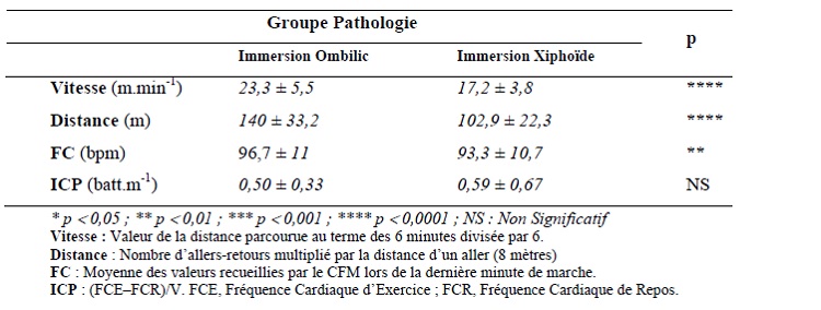 Tableau 9. Comparaison des valeurs mesurées pour le groupe pathologie. (M ± SD)