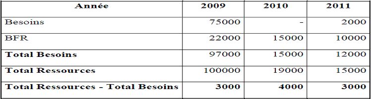 TABLEAU Nº1 : Plan de Financement de l’entreprise « Fatma Confection »