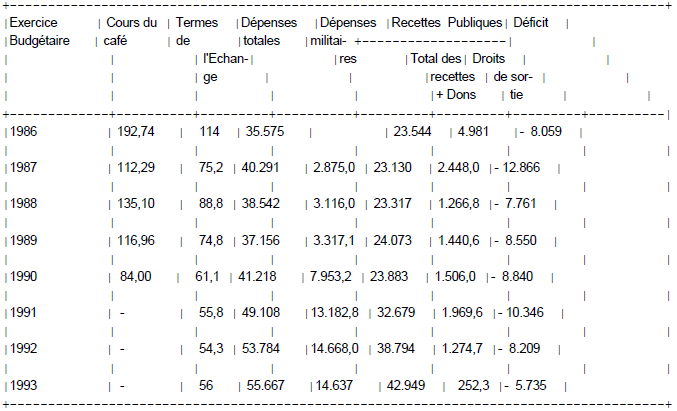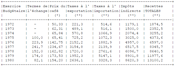 Bref, la situation budgétaire constatée au cours des années 1970, s’explique par le boom caféier qui les caractérise.