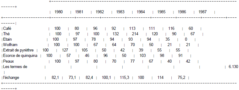 Le tableau suivant nous retrace la situation qui prévalait au Rwanda pendant le boom caféier des années 1970.