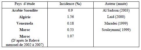 Cependant la mortalité au Maroc (0.003‰) reste importante par rapport à d’autres pays tel que l’Arabie Saoudite (El Amin 1995).