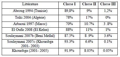 La classe I a dominé le tableau clinique dans notre étude, chose rapportée dans la littérature (El Amin 1995, Soulaymani 2002, 2004, 2005 et 2007).