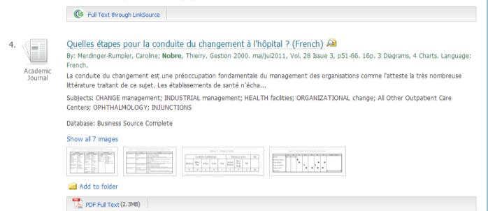 – NOBRE Thierry, Quelles étapes pour la conduite du changement à l’hôpital? » (en collaboration avec C. Merdinger-Rumpler), dans la revue Gestion 2000, Vol. 3, n° 11, 2011