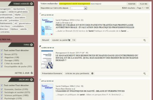 L’association de mots-clés comme : santé et management sont vraiment pertinentes dans la mesure où ils fournissent des résultats précis et directement liés au sujet ou à l’une des parties que j’ai souhaité aborder dans mon mémoire, les documents sont facilement et rapidement exploitables.