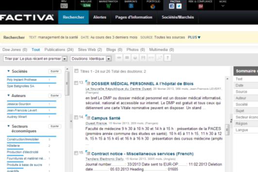 – Factiva et Delphes permettent également d’obtenir des articles d’actualités et des informations récemment sur le sujet traité dans la presse